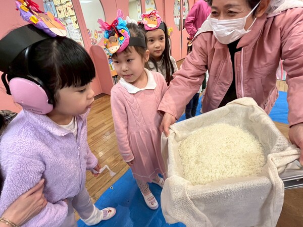 もち米からおもちになる様子を不思議そうに見ている子どもたち!