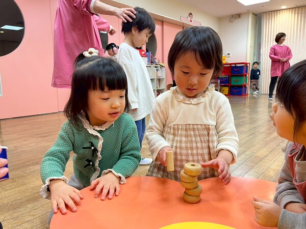 「福笑い」「けん玉」「だるまおとし」など、はじめて遊ぶ子も多かったのですが、みんな楽しそうにチャレンジしてました。